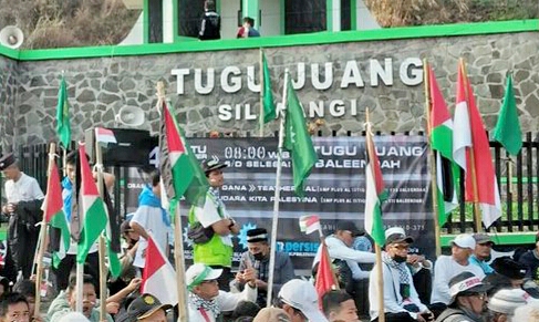 BANDUNG – Ratusan warga Kabupaten Bandung yang berasal dari keluarga besar persatuan Islam berkumpul di Tugu Juang Baleeendah menggelar aksi bela Palestina lantaran tanpa henti dibombardir oleh Israel.