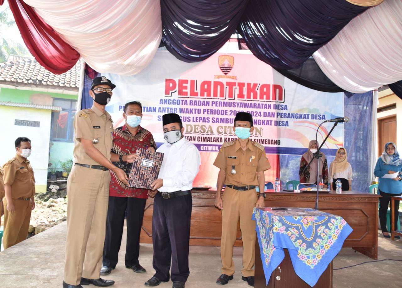 Kepala Desa Citimun Dadan menyampaikan ucapan selamat kepada anggota yang telah dilantik saat ini, Ia berharap kepada para anggota tersebut untuk bekerja dengan baik sesuai tugasnya masing-masing dan dapat melayani masyarakat dengan baik serta tetap melaksanakan Protokol Kesehatan.