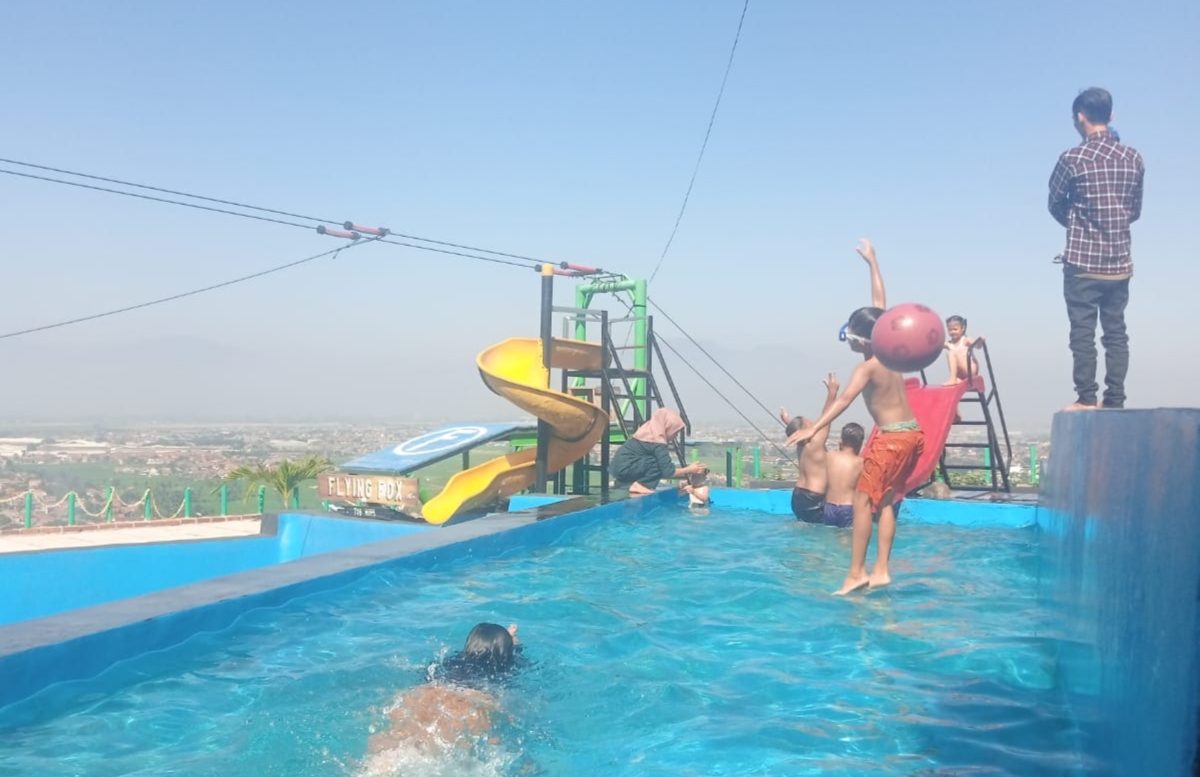 INISUMEDANG.COM – Bagi warga Jatinangor dan sekitarnya, jika ingin sensasi baru berenang diatas ketinggian sambil melihat pemandangan kawasan pendidikan Jatinangor, saatnya mencoba kolam renang anak di Teras Gunung Geulis Desa Jatiroke Kecamatan Jatinangor.