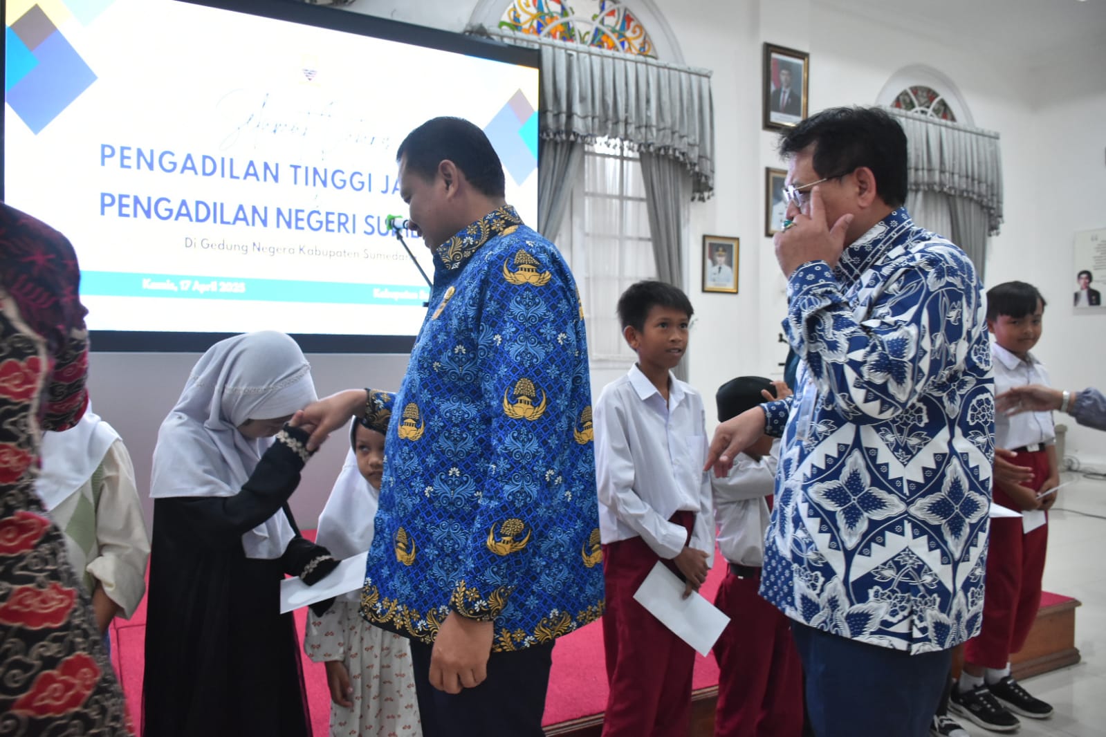 Santunan diserahkan oleh Bupati Sumedang H. Dony Ahmad Munir, Ketua Pengadilan Tinggi Jakarta Catur Irianto dan Ketua Pengadilan Negeri Sumedang Hera Polosia Destiny.