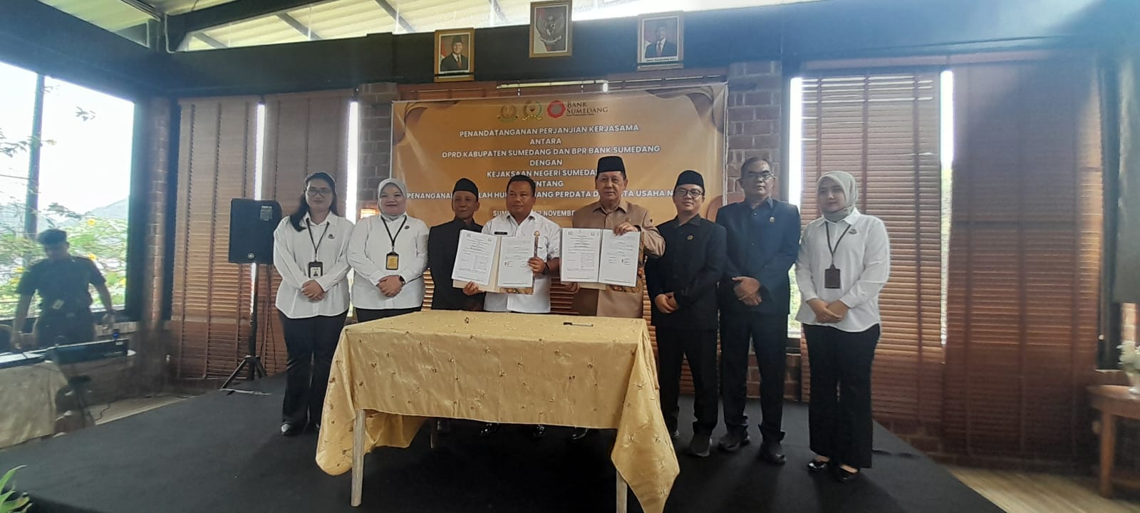 Kerja sama tersebut ditandai dengan penandatanganan nota kesepahaman (MoU) antara Ketua DPRD Sumedang Sidik Jafar, Direktur BPR Bank Sumedang Yanti Krisyana Dewi, dan Kepala Kejari Sumedang Sarta, SH., MH. di Shapire City Park, Rabu (12/11/2025).