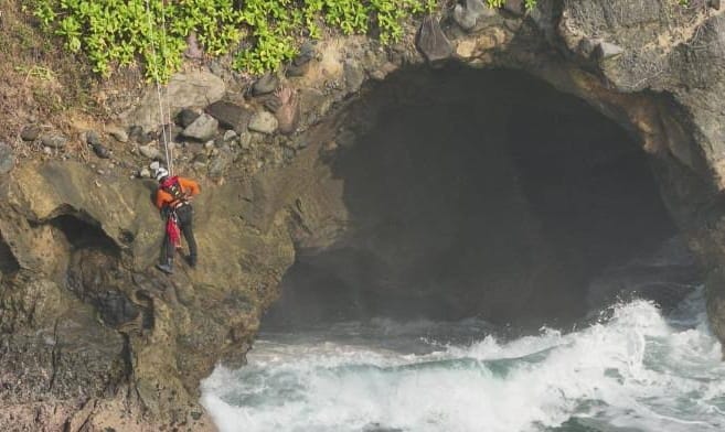 SRU 1 melaksanakan Observasi di puncak Guha menggunakan peralatan Vertical Rescue dilanjutkan dengan observasi visual pesisir pantai menggunakan UAV Drone Thermal dari pantai Cicalobak hingga puncak Guha sejauh 4 km.