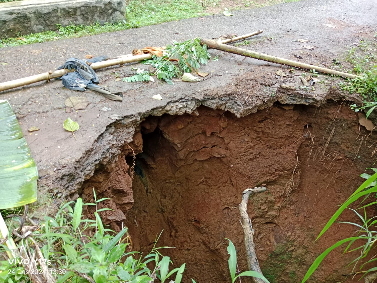 Jalan yang berstatus jalan Kabupaten ini, diakibatkan hujan deras yang mengguyur wilayah wado pada Selasa, 24 Desember 2024.