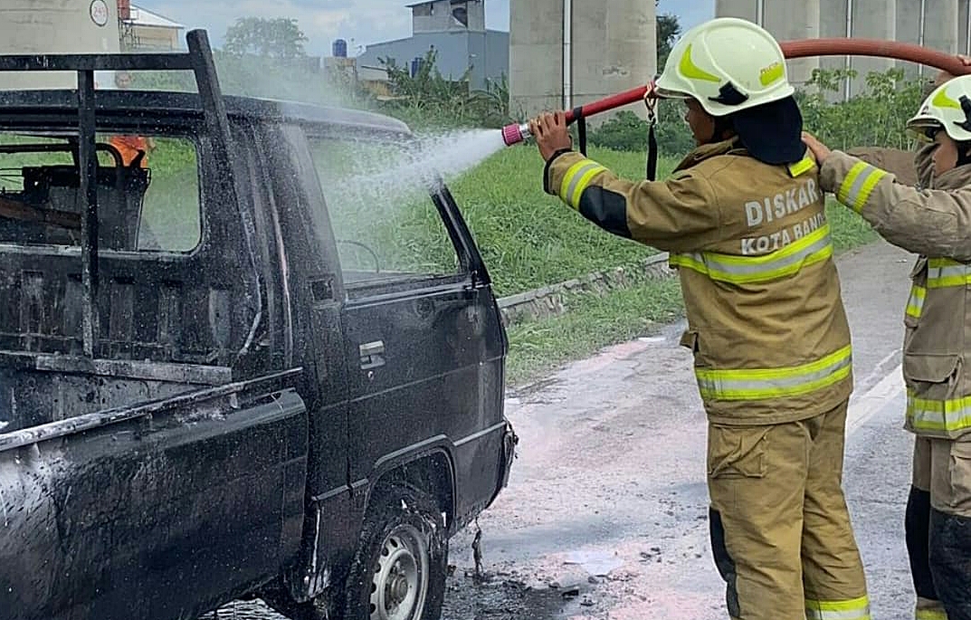 “Sebanyak 1 unit Pancar UPT Barat dibantu pihak Jasa Marga dan PJR Polda Jabar melakukan upaya penanganan kebakaran mobil jenis pick up tersebut,” ungkap Gun Gun.