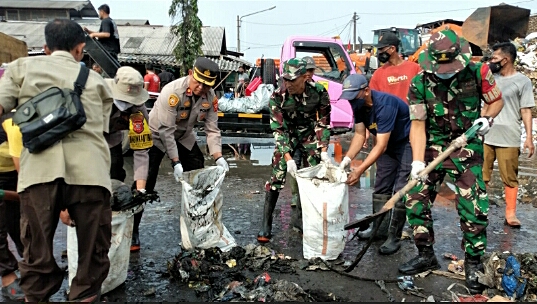 BANDUNG – TNI-Polri bersama masyarakat bersinergi turun untuk membersihkan sejumlah titik di kawasan Baleendah Kabupaten Bandung, Senin 15 Januari 2024.