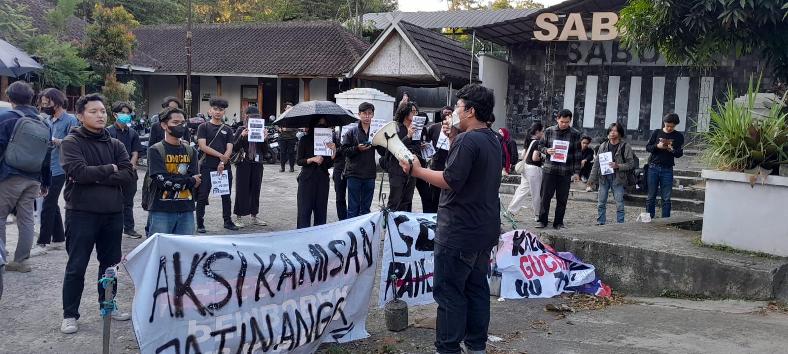 SUMEDANG, 26 Juni 2025 – Puluhan Mahasiswa Unpad dan perwakilan tokoh pemuda di Jatinangor menggelar aksi damai dengan menggelar orasi di depan Gedung Sabusu (Saung Budaya Sumedang) Desa Sayang Kecamatan Jatinangor.