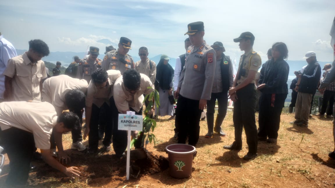 SUMEDANG – Polres Sumedang terus melakukan upaya pemulihan lahan kritis, khususnya bekas tambang yang ditinggalkan mulai direklamasi melalui program penanaman pohon buah-buahan yang melibatkan masyarakat secara langsung.