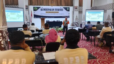 INIUMEDANG.COM – Kepala Pelaksana Badan Penanggulangan Bencana Daerah (BPBD) Kabupaten Sumedang memberikan materi pada Bintek Kebencanaan BPBD Kabupaten Halmahera Timur…