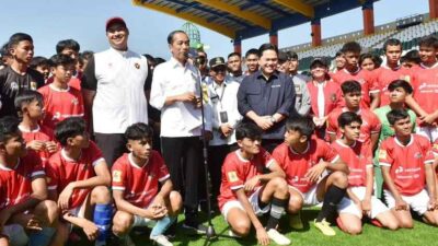 BANDUNG – Presiden Jokowi (Joko Widodo) melihat langsung proses seleksi Timnas U-17 di Stadion Si Jalak Harupat, Kecamatan Kutawaringin, Kabupaten…
