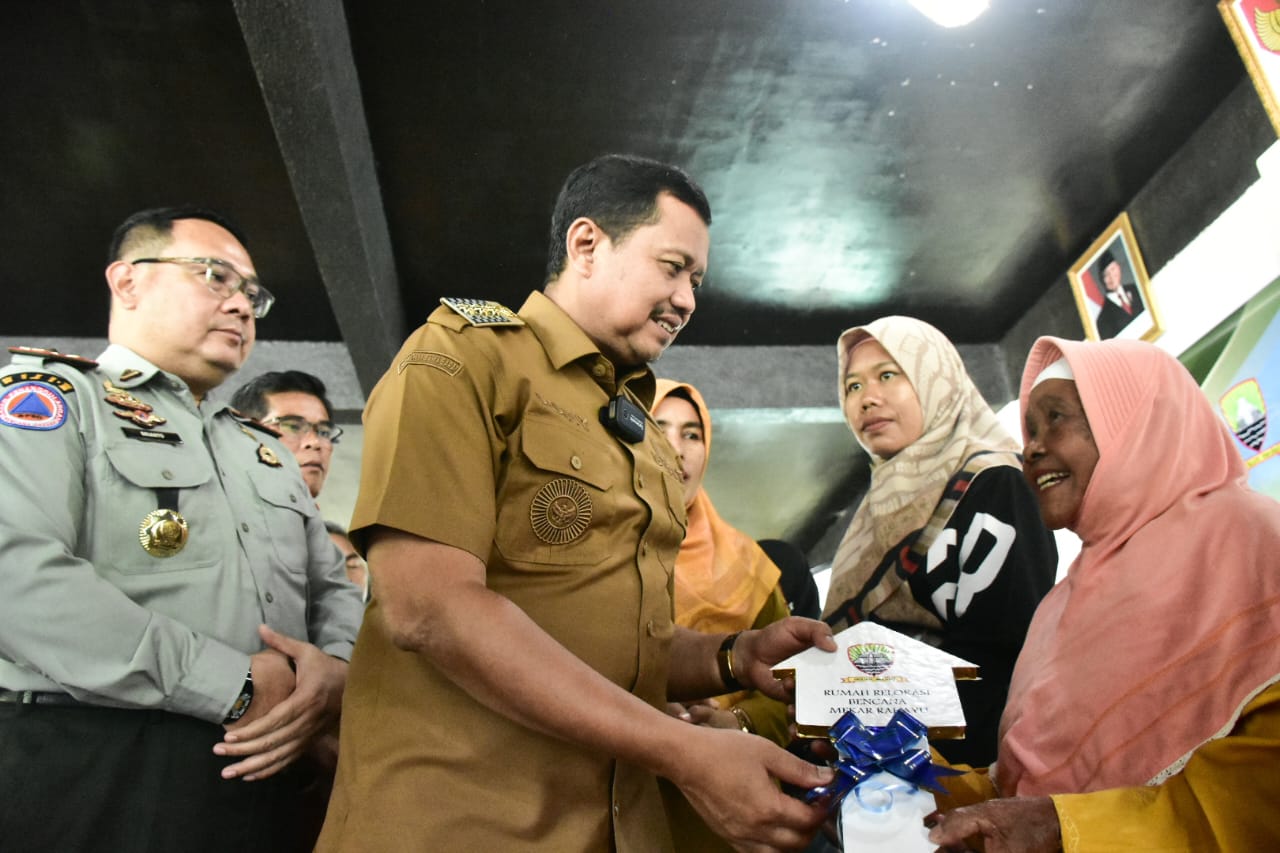 Selain menyerahkan kunci rumah, pemerintah daerah juga menyalurkan bantuan peralatan rumah tangga serta paket sembako untuk mendukung warga beradaptasi di tempat tinggal baru.